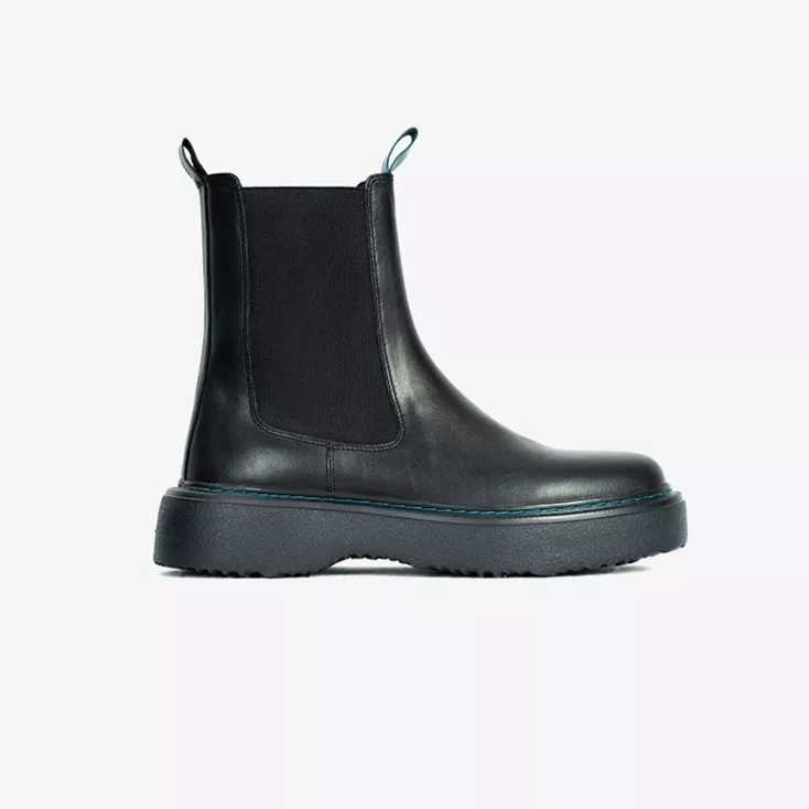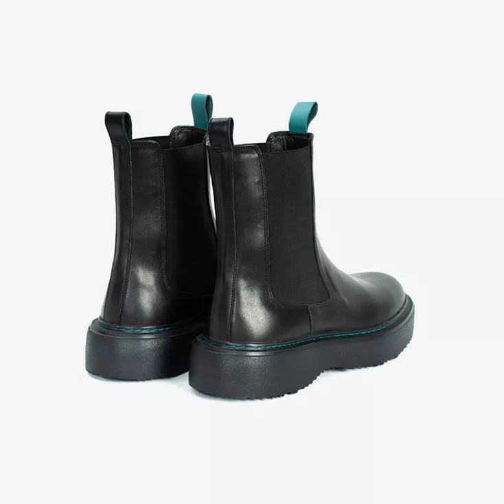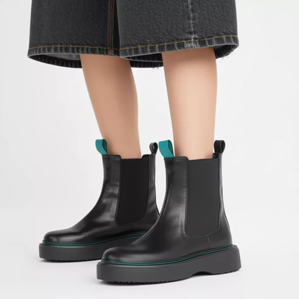 این نیمبوت چلسی، بازتعریفی جسورانه از یک مدل کلاسیک است. طراحی این کفش ترکیبی هوشمندانه از وقار رنگ مشکی و انرژیِ جزئیات رنگی (سبز کلهغازی) است. برخلاف مدلهای سنتی، این نیمبوت دارای زیرهای ضخیم و لژدار (Chunky Sole) است که علاوه بر افزایش قد، ظاهری قدرتمند، مدرن و امروزی به استایل شما میبخشد.