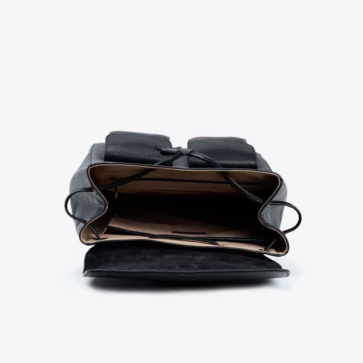 طراحی هوشمندانه این کوله شامل دو جیب پاکتی در قسمت جلو است که دسترسی سریع شما به اقلام پرکاربرد مثل کلید، کارت مترو یا هندزفری را بسیار آسان میکند. سیستم بسته شدن دهانه کیف با بندهای جمعشو و یک درب محافظ بزرگ، امنیت وسایل شما را تضمین کرده و در عین حال ظاهری کلاسیک به کیف میدهد. دسته کوتاه تعبیهشده در بالا نیز امکان حمل دستی آسان را در مکانهای شلوغ فراهم میکند.